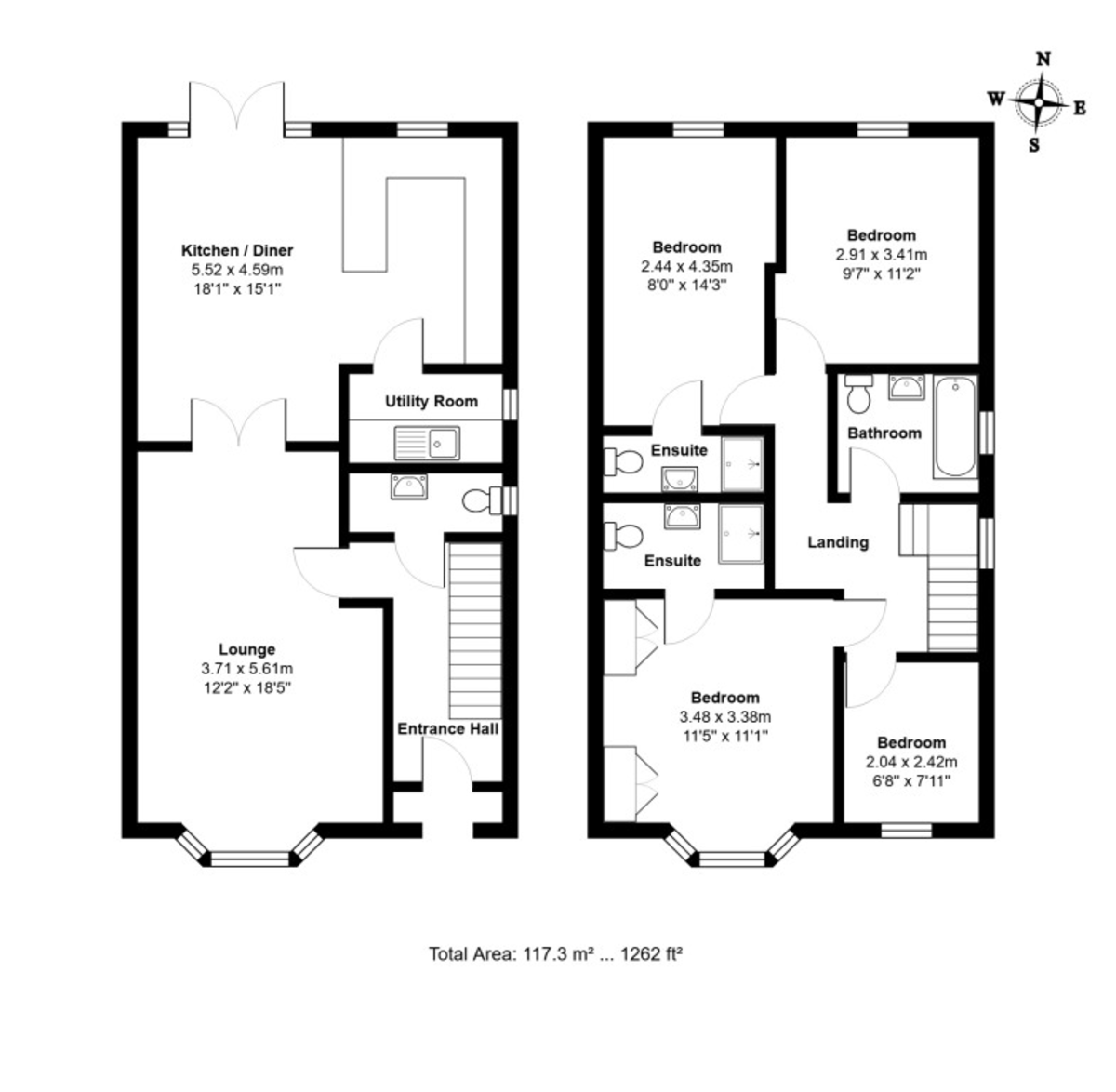 BEDROOMONE11' 5" x 11' 1" approx. (3.48m x 3.38m) Bay window to front, door to en-suite.