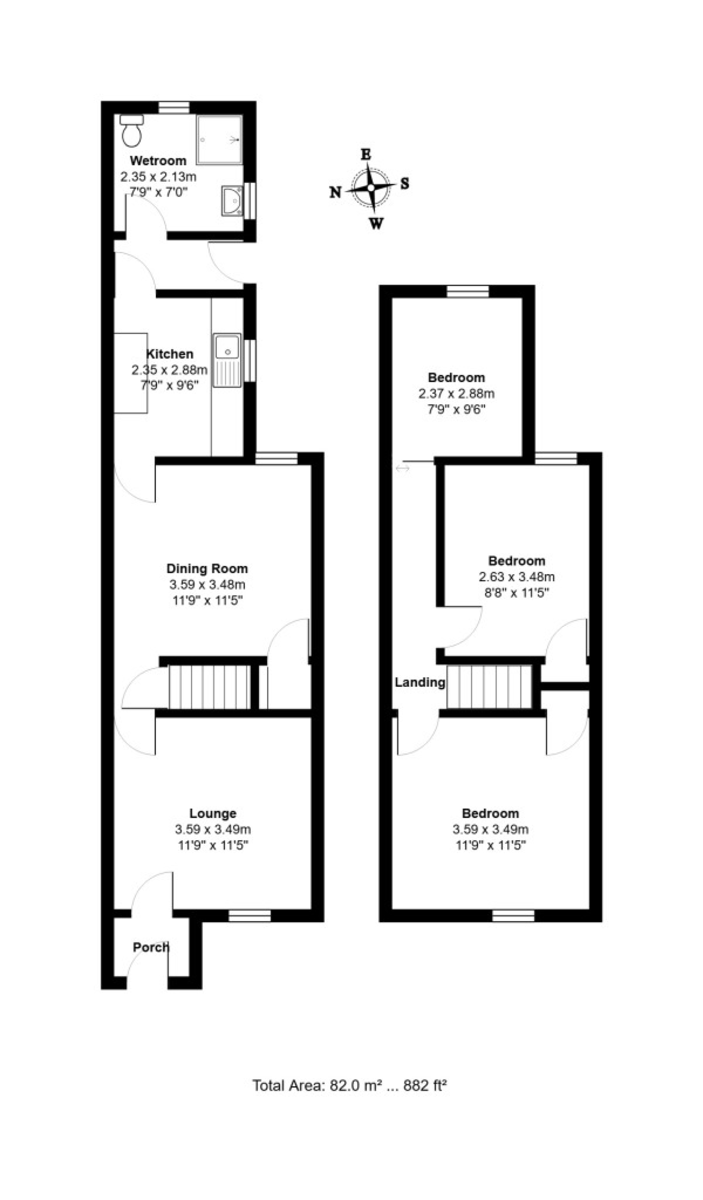 BEDROOM TWO 8' 8" x 11' 5" approx. (2.64m x 3.48m) Double glazed window to rear, radiator.
