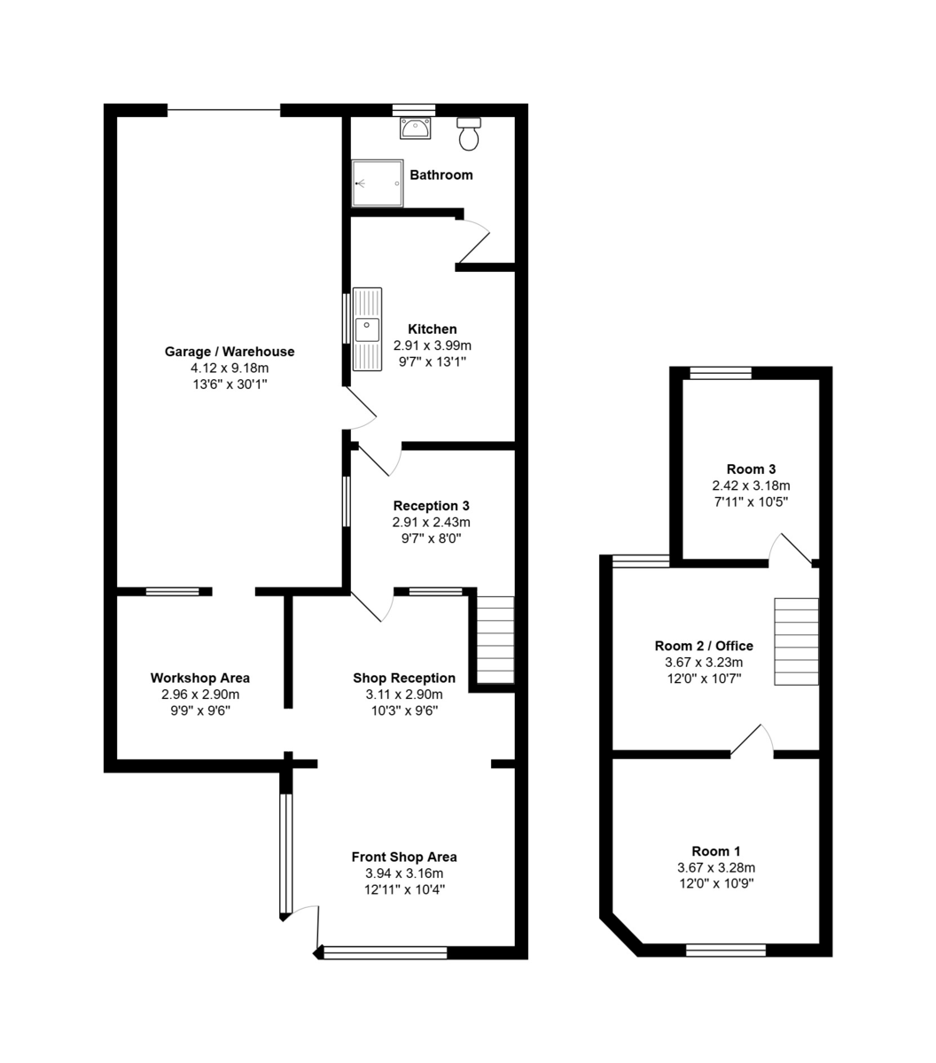 REAR SHOP AREA 12' 11" x 9' 7" (3.94m x 2.92m)
