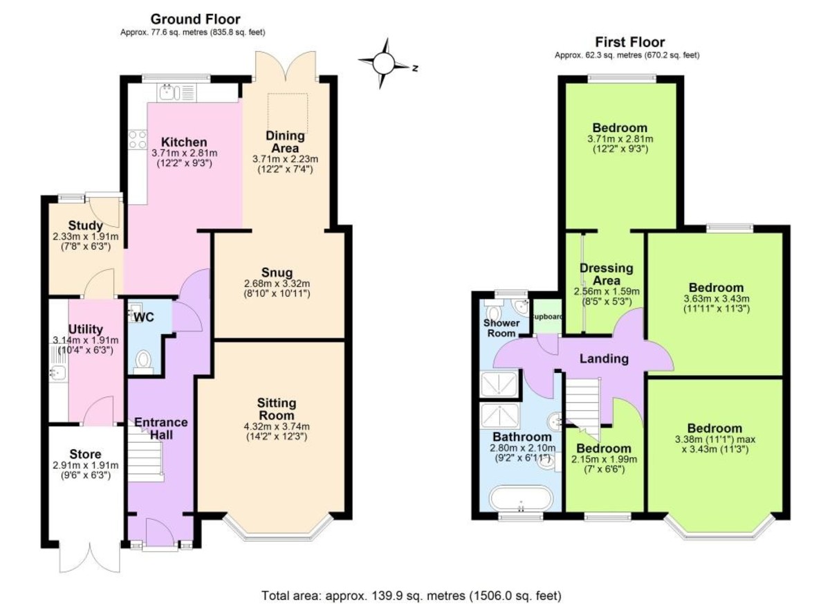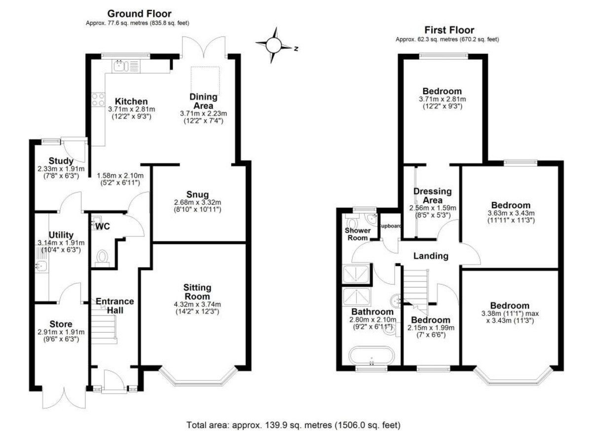 A split landing leads to four generously proportioned bedrooms, including a superb principal suite with vaulted ceiling and its own en-suite dressing area. The first floor further benefits from a luxurious four-piece family bathroom and an additional shower room, both finished to a high contemporary standard. Externally, the property enjoys a good-sized established westerly facing rear garden mainly laid to mature lawn with entertainment patio, sheltered side patio, children's play area, cabin/bar with mains power and lighting and shed, while the ample frontage provides extensive parking and access to a garage/store. This handsome and substantially improved home warrants early viewing to fully appreciate its quality, scale, and prime location.