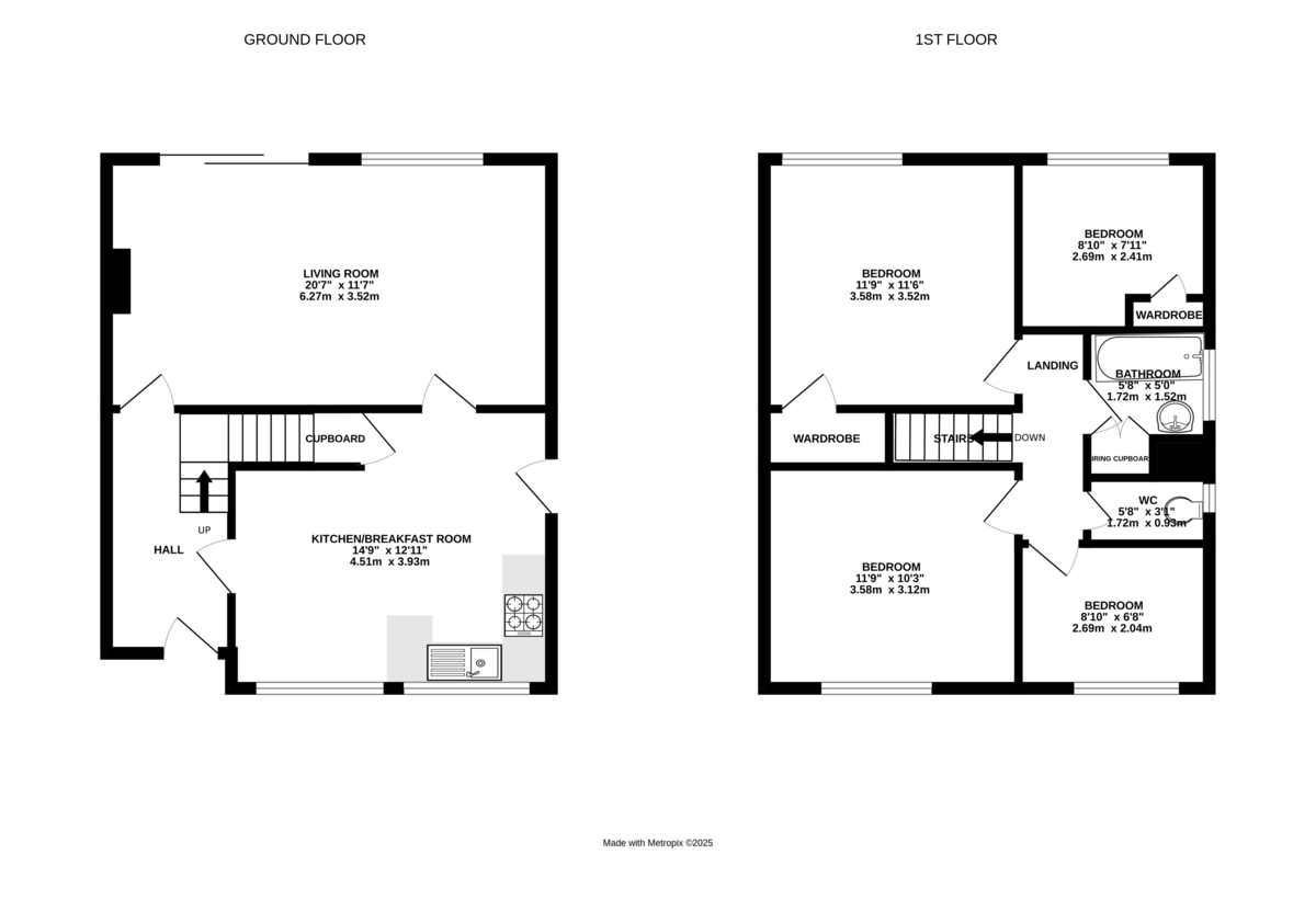 BEDROOM TWO 11' 7" x 9' 9" (3.53m x 2.97m) Window to front aspect, storage cupboard and radiator.